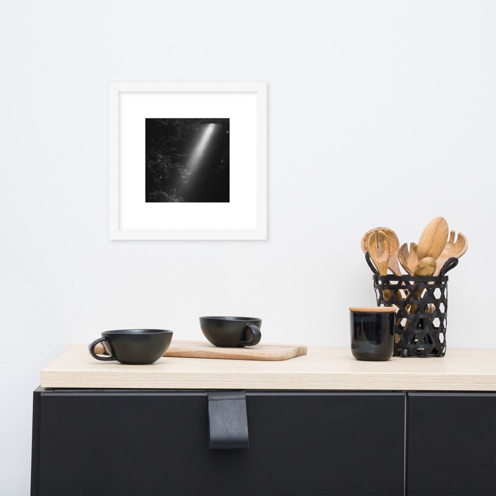 seiartinc, original photography, fine art, wearart, framed poster, Sunlight Filtering Through Trees, 木漏れ日, 木, sunlight, trees, forest, nature, natural, landscape, botanical, komorebi, monochrome, black and white, b&w, モノクロ, 白黒, photo, art, design, interior, wall art, decoration, フレーム付きポスター, ウォールアート, インテリア, 写真家, オリジナルデザイン