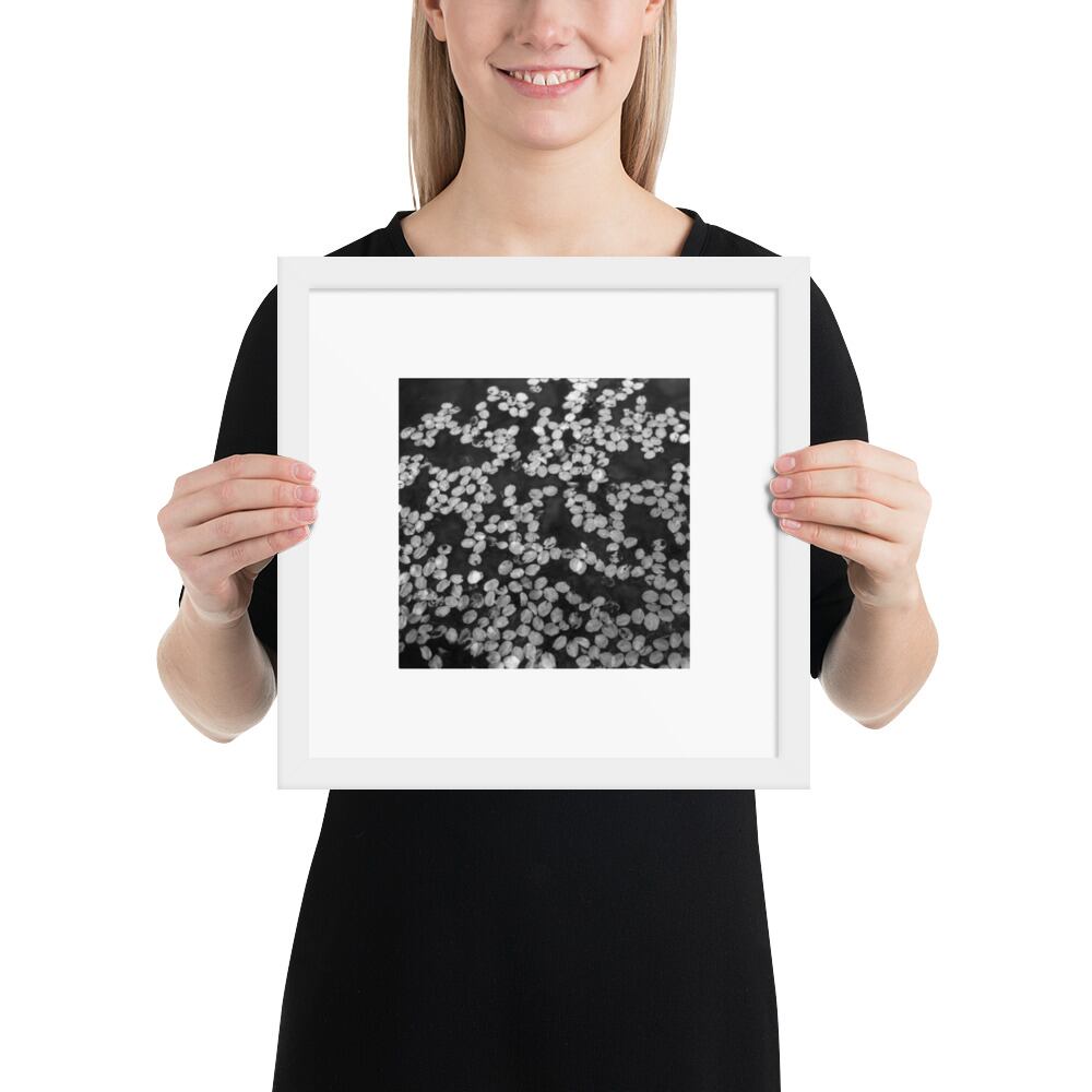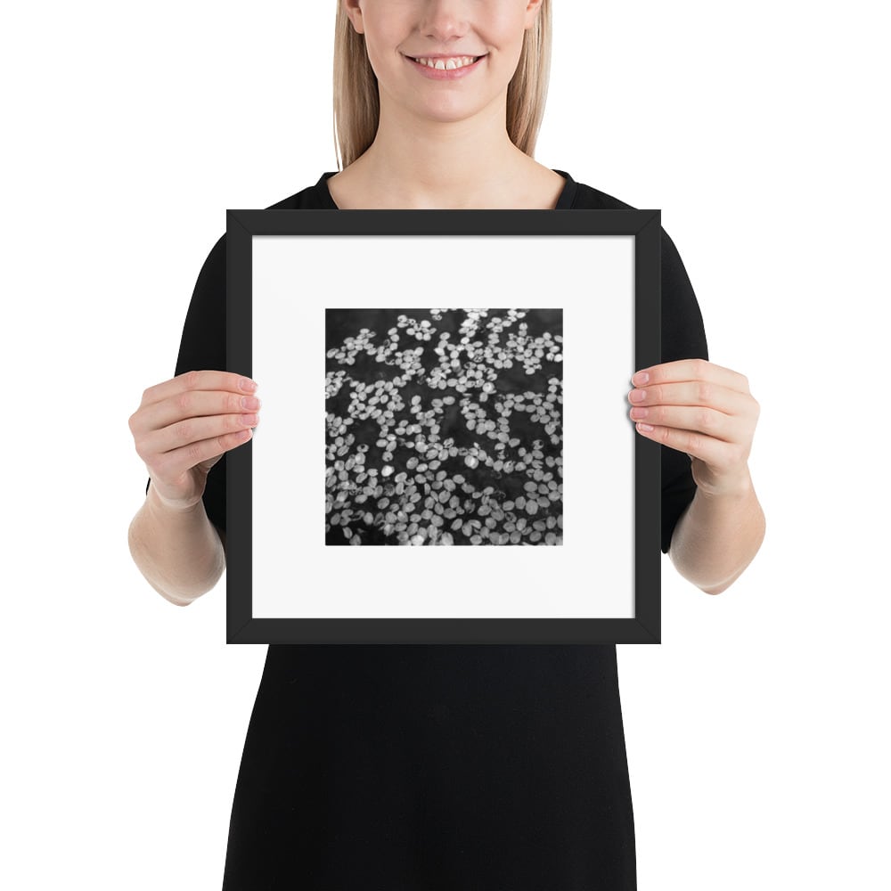 Cherry Blossom Petals in Puddle (B&W) - Framed Matte Paper Poster (in) | 桜のはなびら 水たまり モノクロ フレーム付き 強化マットポスター(インチ)