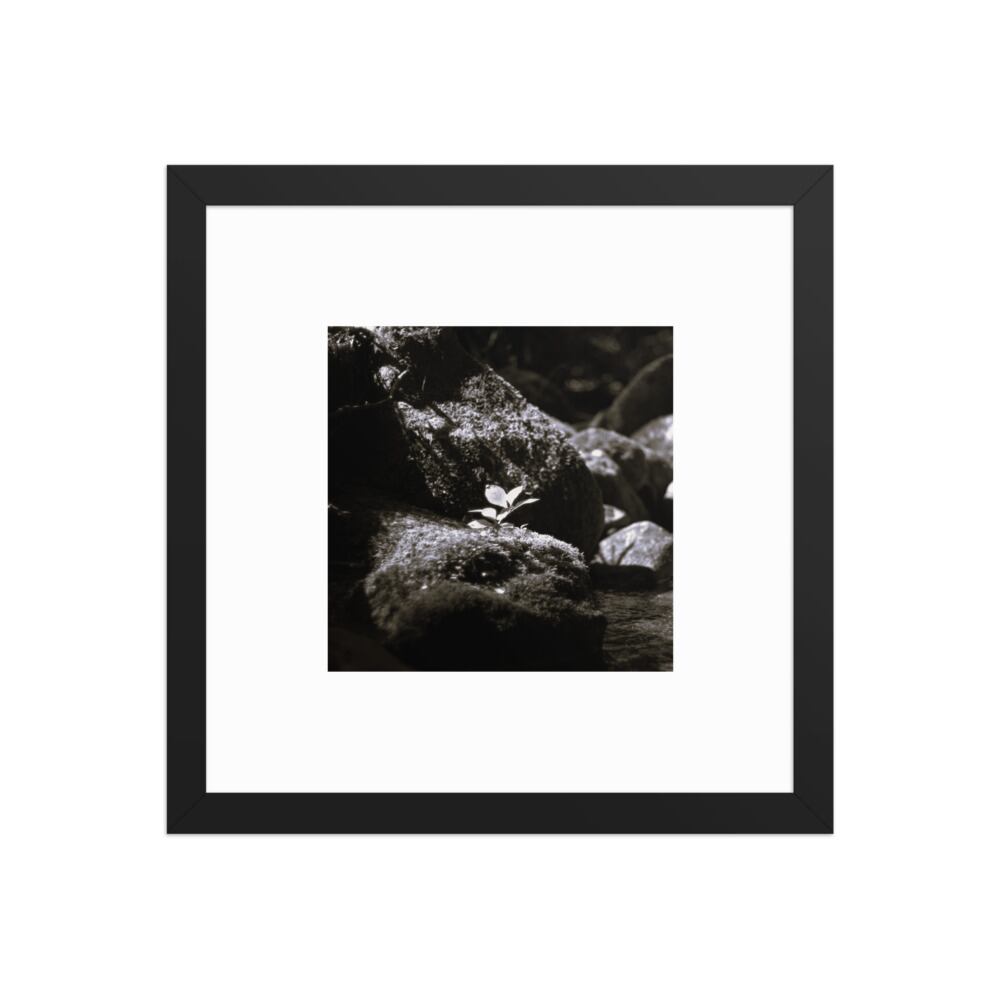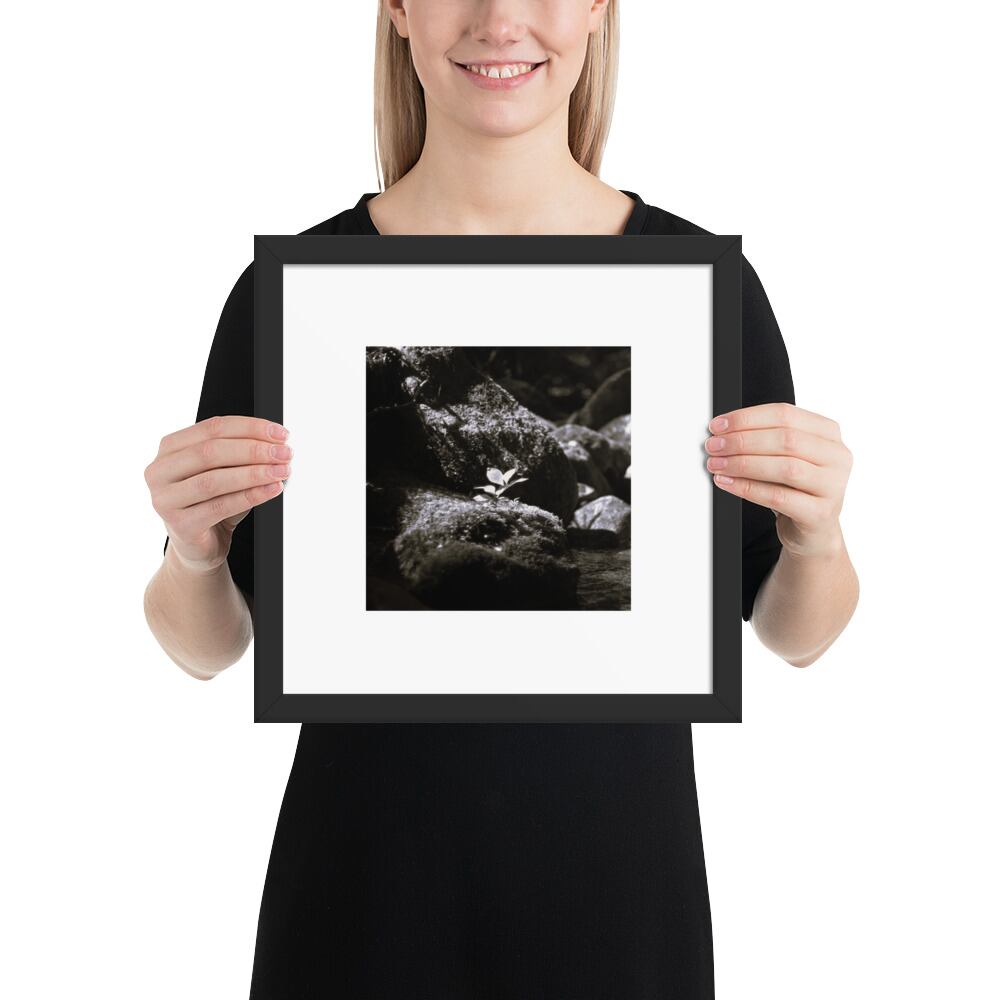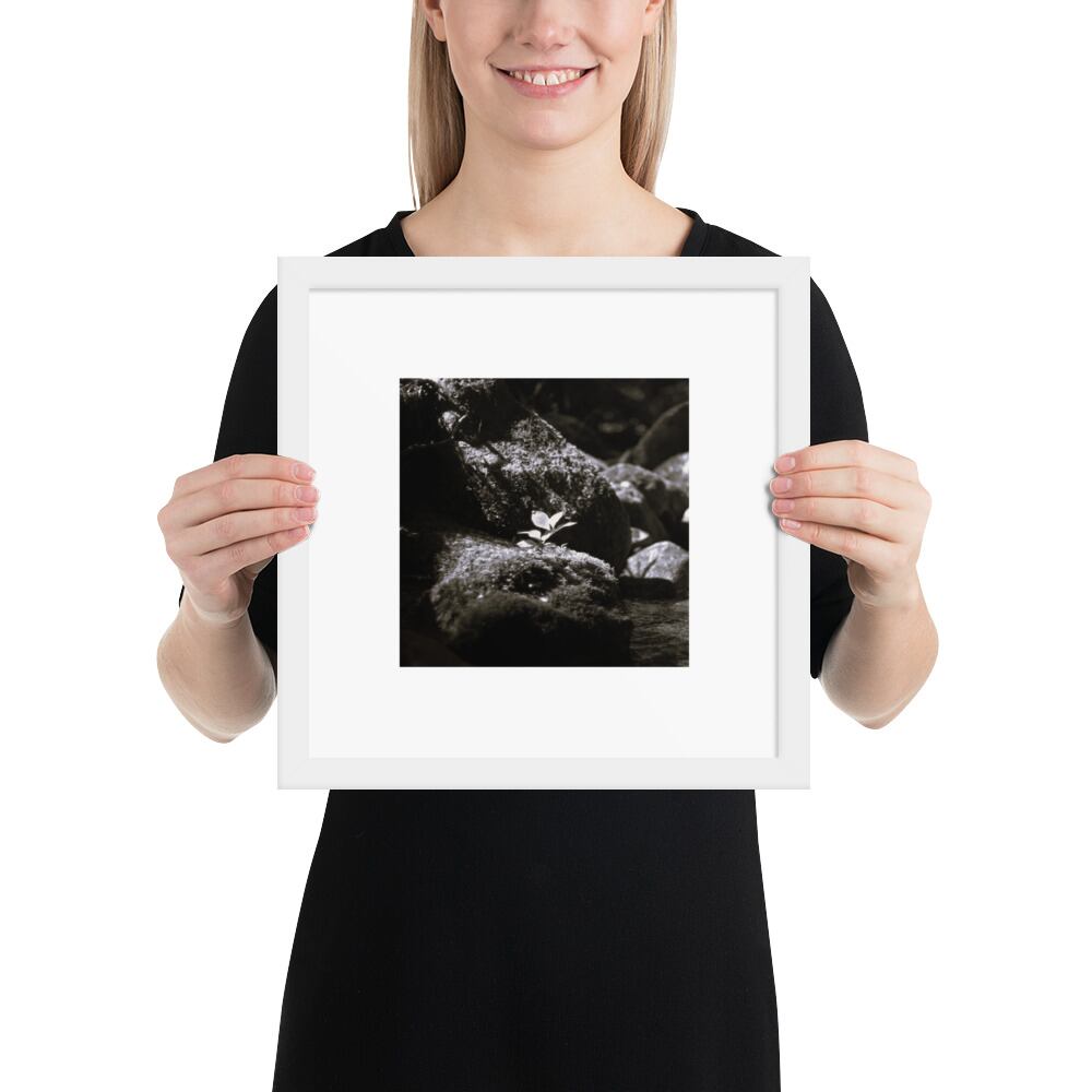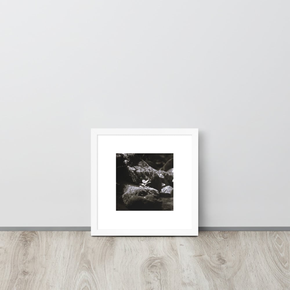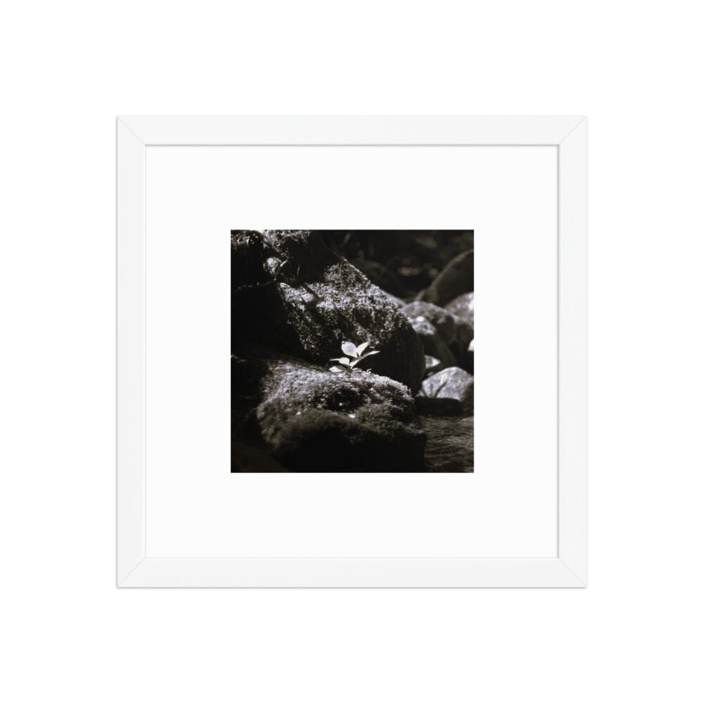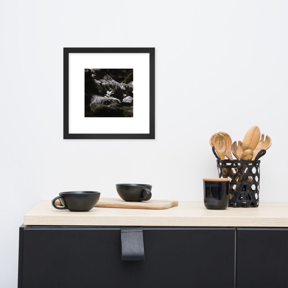 Plant on a Rock (B&W) - Framed Matte Paper Poster (in) | 岩の上の植物 モノクロ フレーム付き 強化マットポスター(インチ)