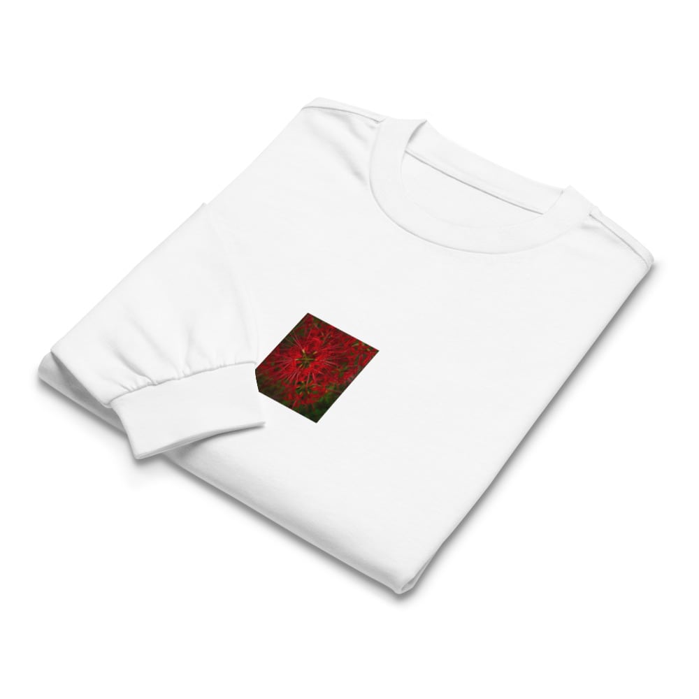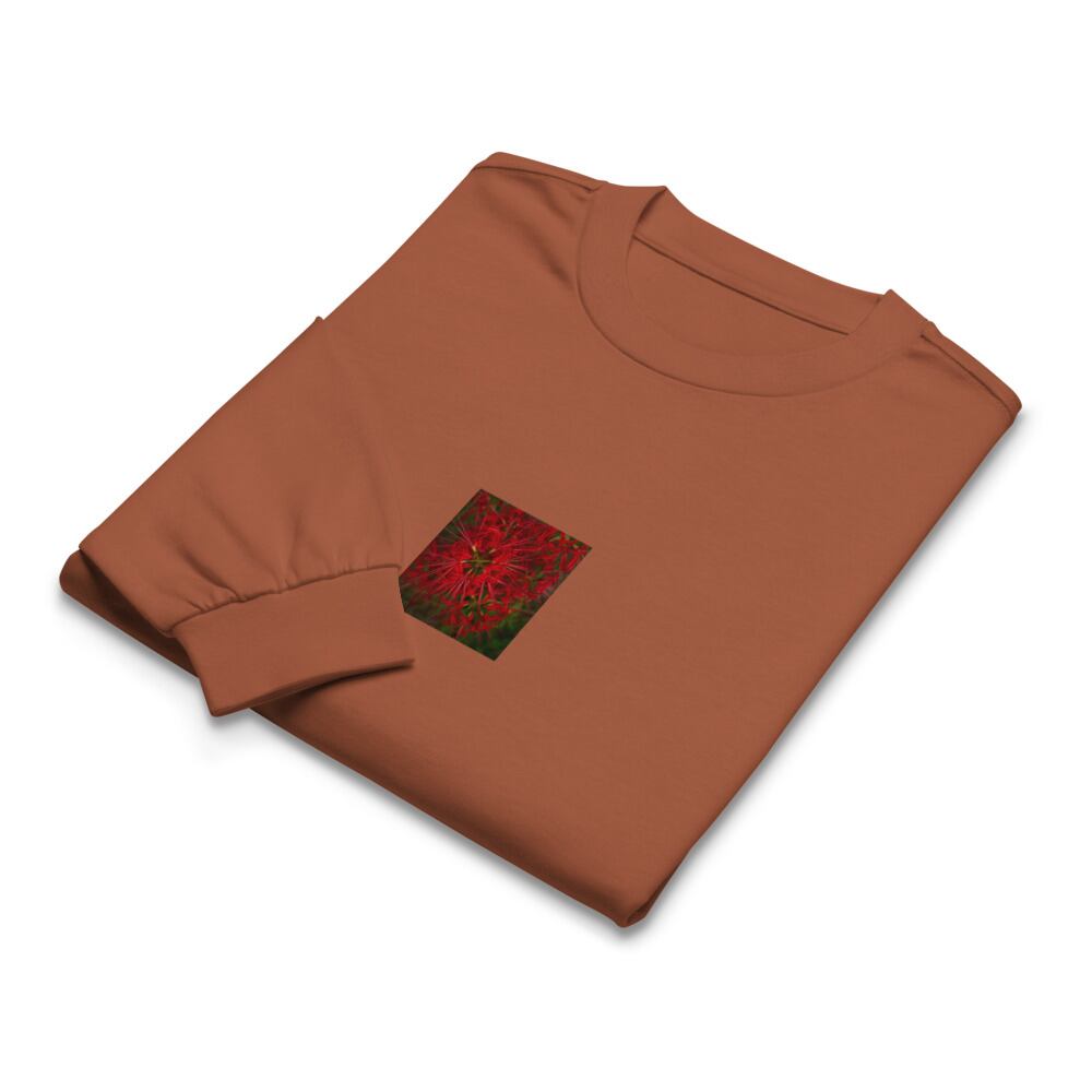 seiartinc, original photography, fine art, wearart, long sleeve, Red Spider Lily, 彼岸花, 曼珠沙華, ヒガンバナ, flower, plant, nature, natural, botanical, lycoris, red, autumn, color photo, photo, art, design, 長袖Tシャツ, ロンT, プレミアム, ヘビーウェイト, リラックスフィット, アパレル, ファッション, 写真家, オリジナルデザイン, AS Colour 5029