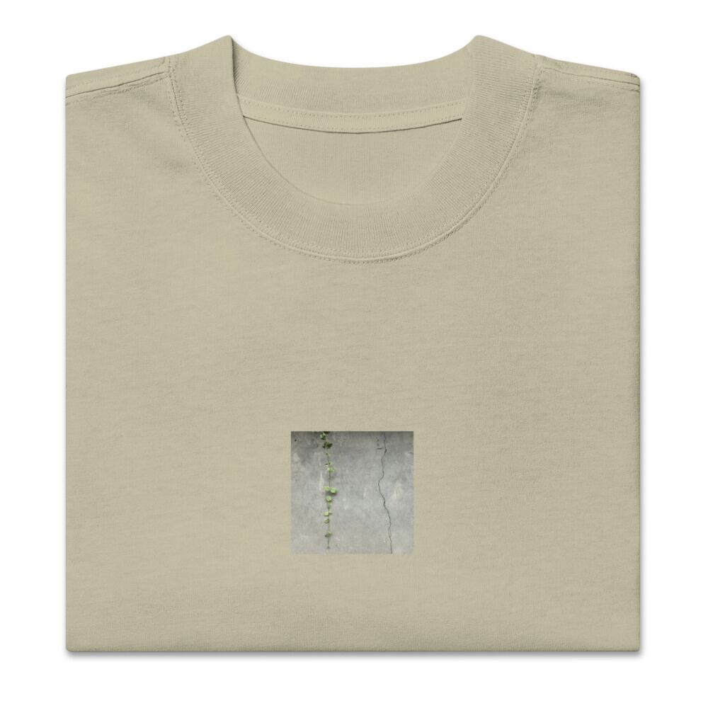 seiartinc, original photography, fine art, wearart, oversized t-shirt, faded, Crack and Leaf, 葉, ひび割れ, crack, leaf, nature, texture, street, minimalist, contrast, green, color photo, photo, art, design, boxy fit, street wear, オーバーサイズ, フェード, アパレル, ファッション, 写真家, オリジナルデザイン, AS Colour 5082