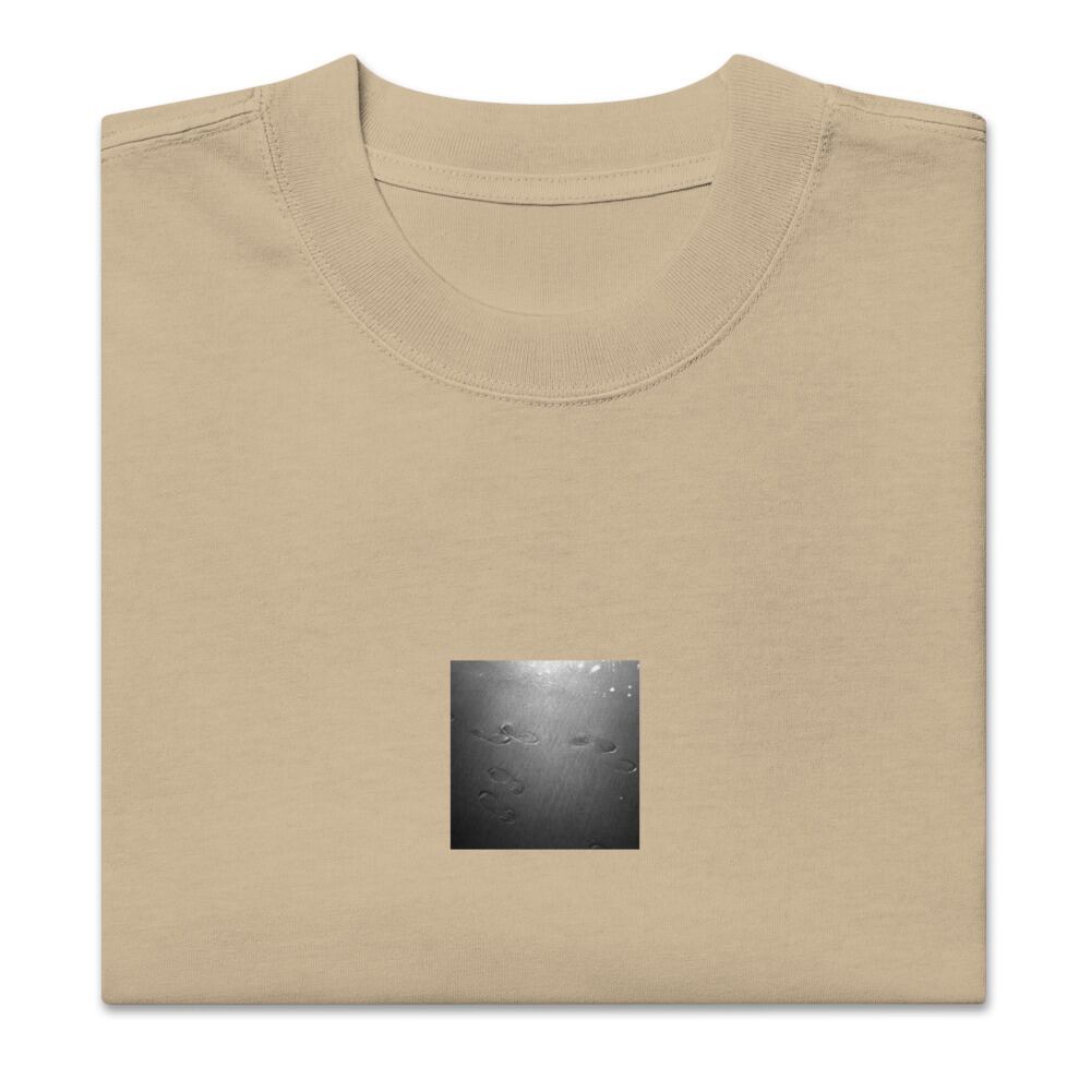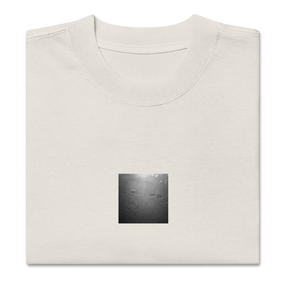 seiartinc, original photography, fine art, wearart, oversized t-shirt, faded, Beach Footprints, 足跡, 浜辺, 砂浜, ビーチ, footprints, beach, sand, ocean, sea, shore, nature, monochrome, black and white, b&w, モノクロ, 白黒, photo, art, design, boxy fit, street wear, オーバーサイズ, フェード, アパレル, ファッション, 写真家, オリジナルデザイン, AS Colour 5082