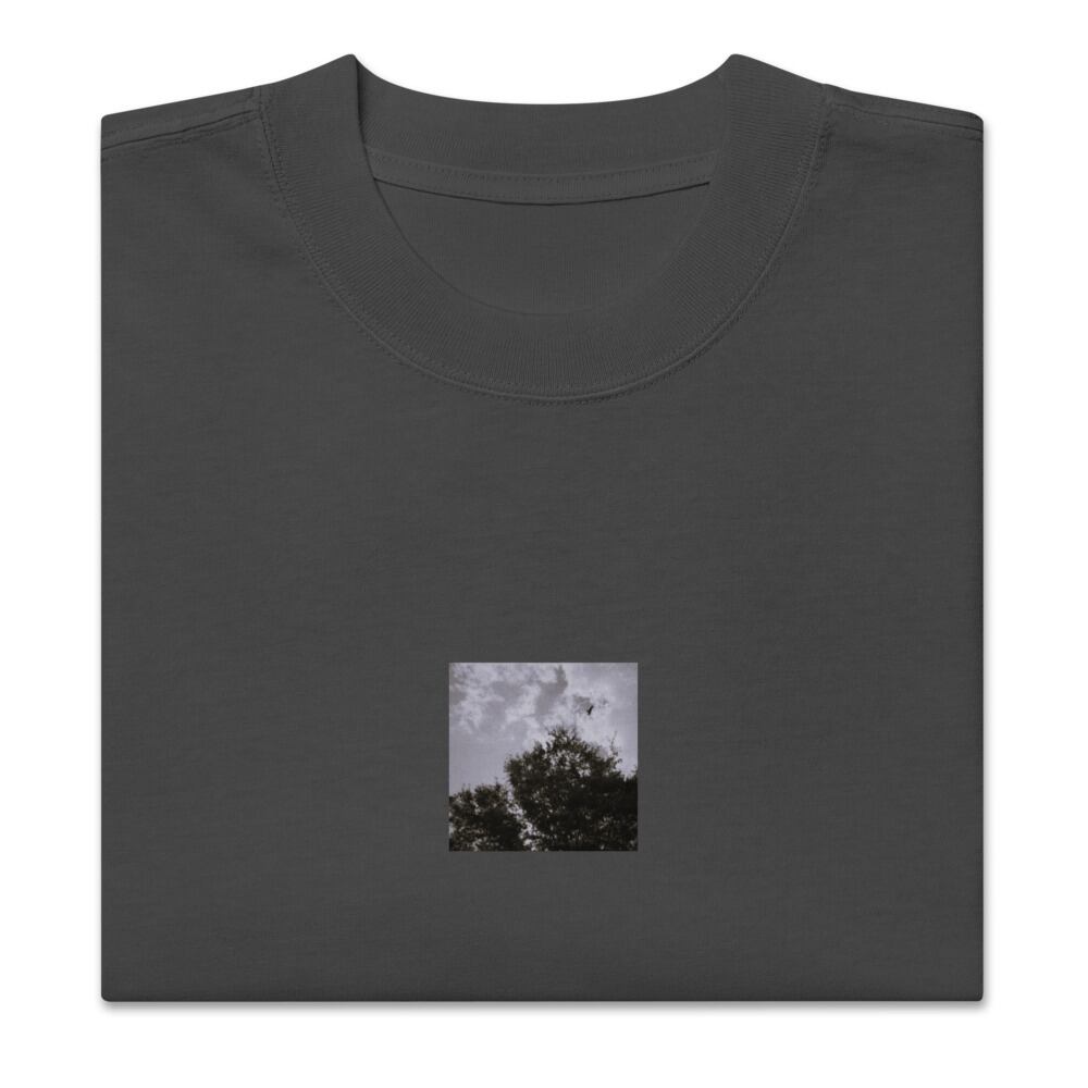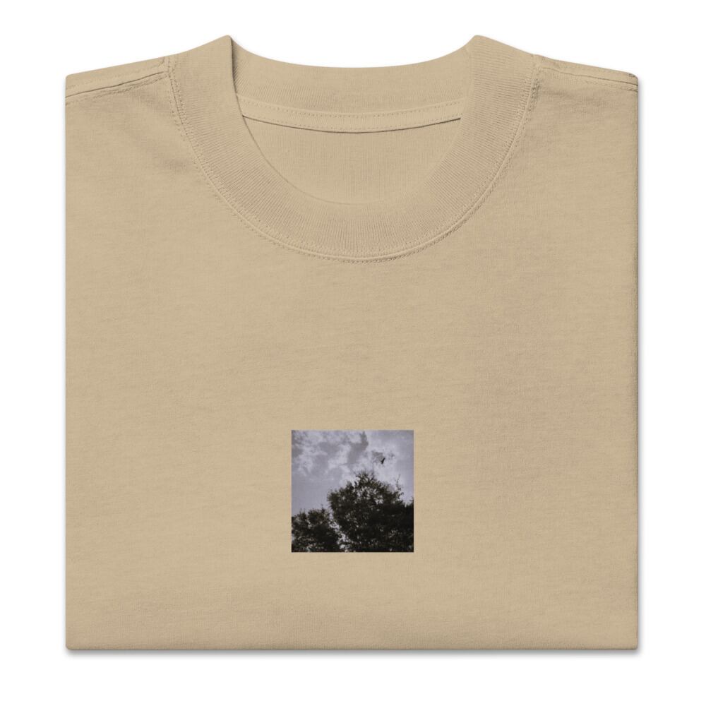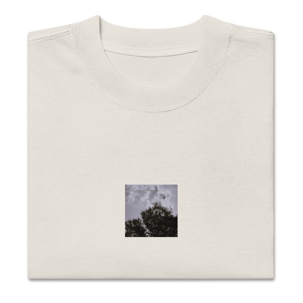 seiartinc, original photography, fine art, wearart, oversized t-shirt, faded, Bird, Tree, Sky, 鳥, 木, 空, bird, tree, sky, nature, natural, landscape, freedom, atmosphere, monochrome, black and white, b&w, モノクロ, 白黒, photo, art, design, boxy fit, street wear, オーバーサイズ, フェード, アパレル, ファッション, 写真家, オリジナルデザイン, AS Colour 5082