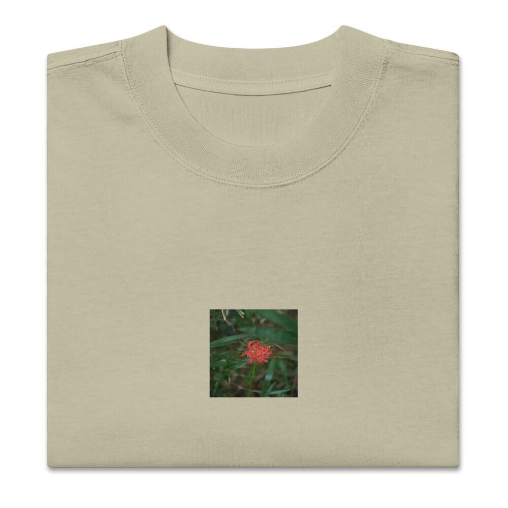seiartinc, original photography, fine art, wearart, oversized t-shirt, faded, Red Spider Lily, 彼岸花, 曼珠沙華, ヒガンバナ, flower, plant, nature, natural, botanical, lycoris, red, autumn, color photo, photo, art, design, boxy fit, street wear, オーバーサイズ, フェード, アパレル, ファッション, 写真家, オリジナルデザイン, AS Colour 5082