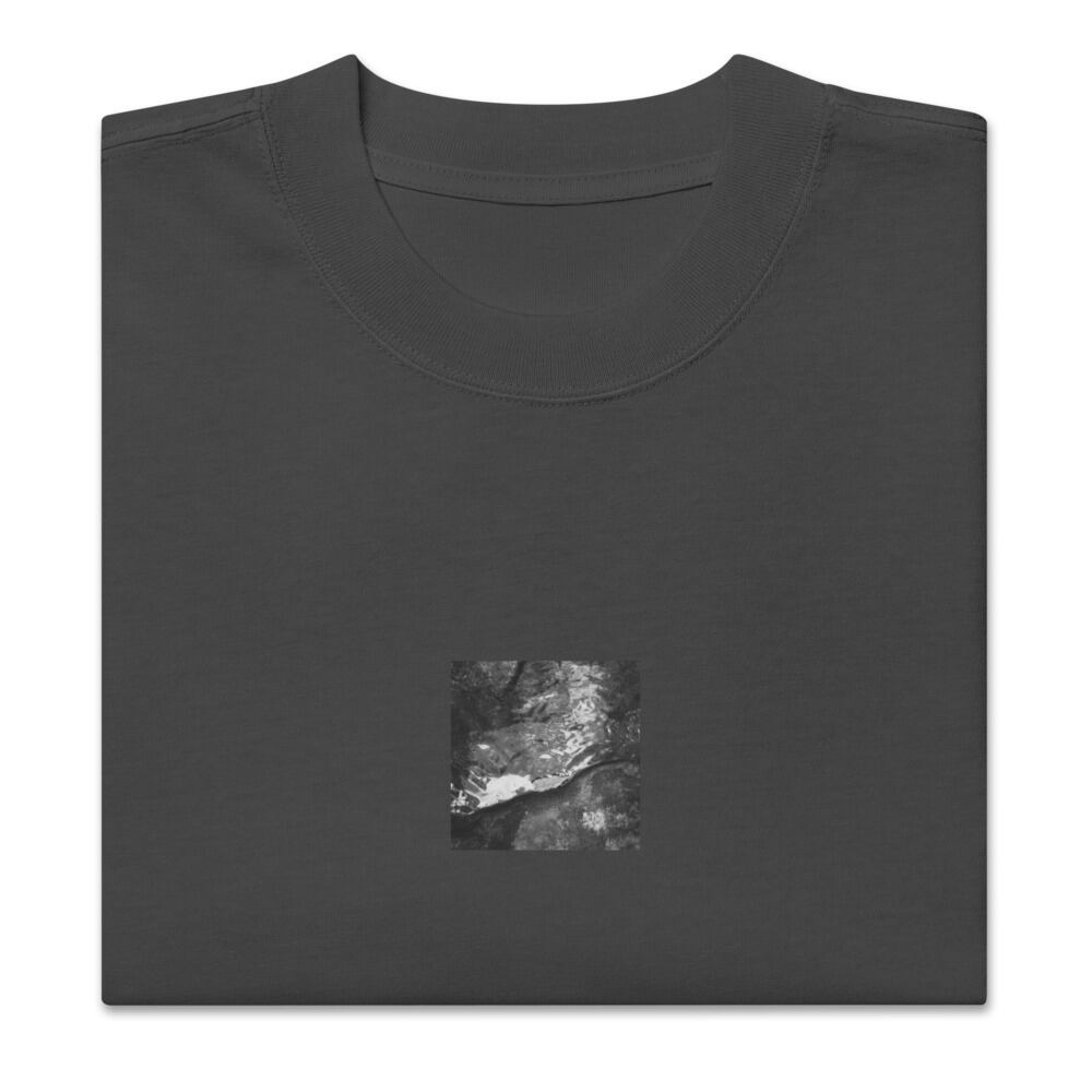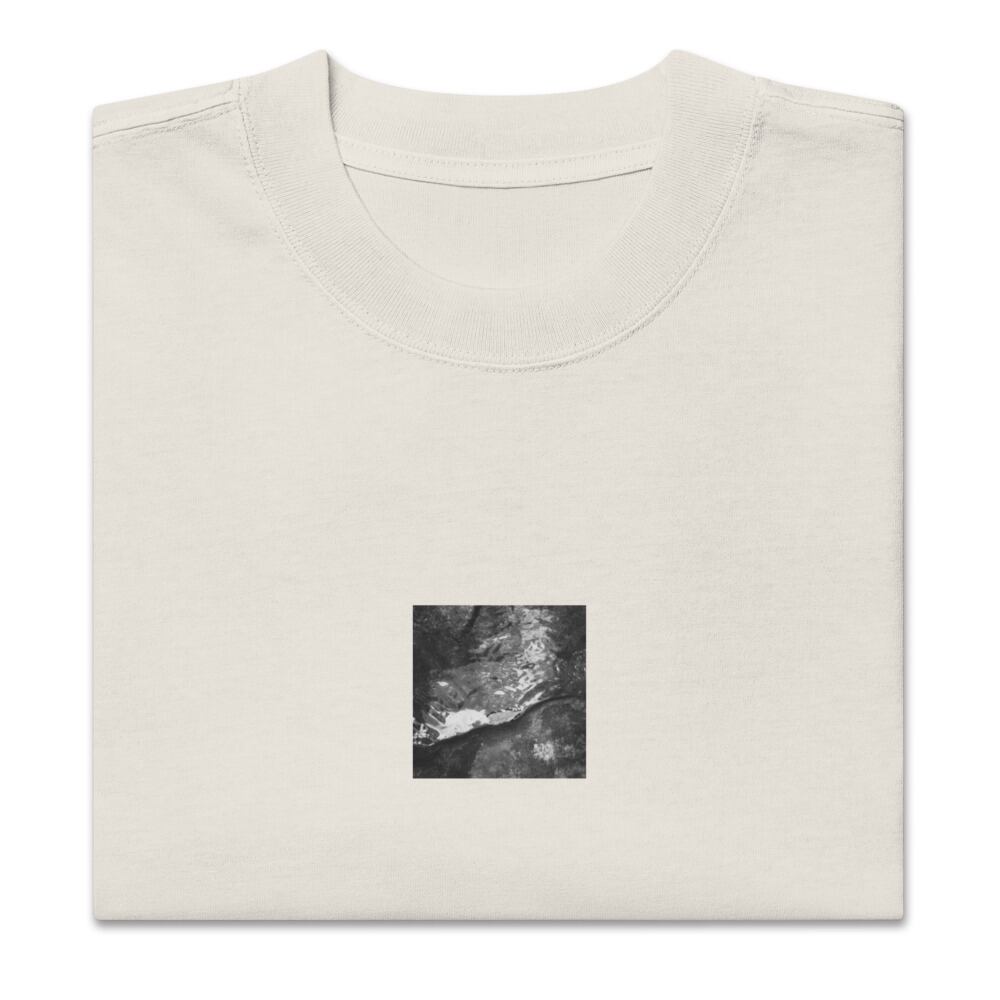 Drifted Leaf (B&W) - Oversized Faded T-Shirt | 流れついた葉 モノクロ オーバーサイズフェードTシャツ
