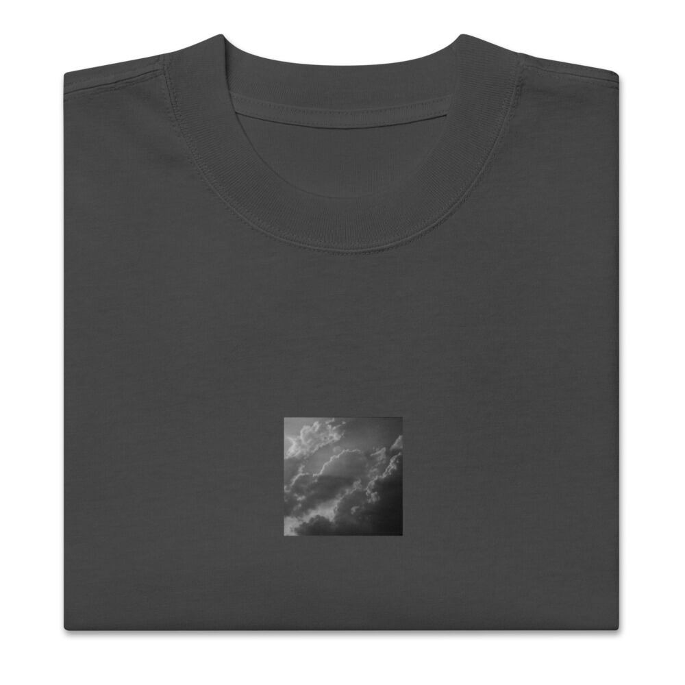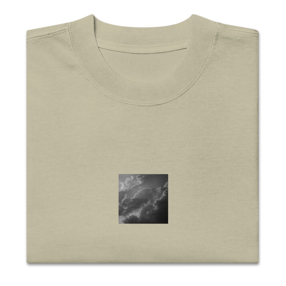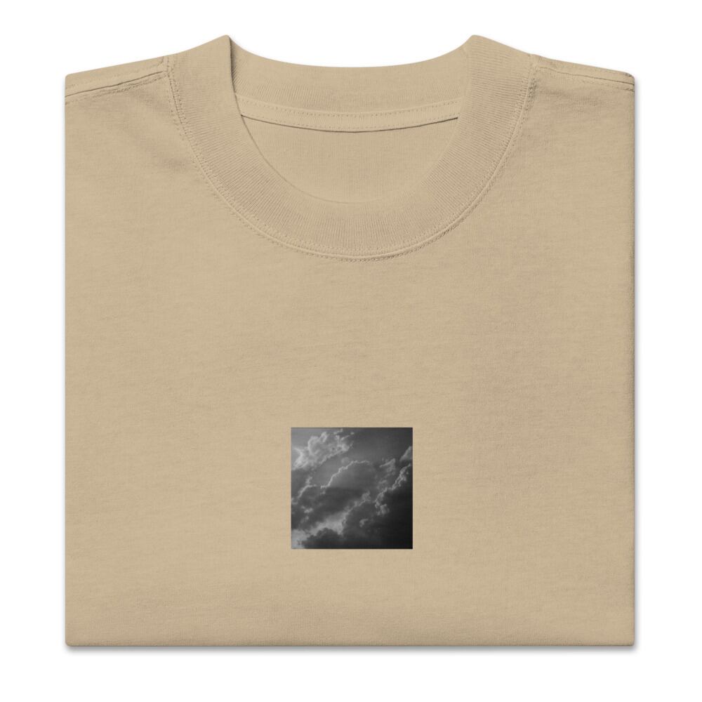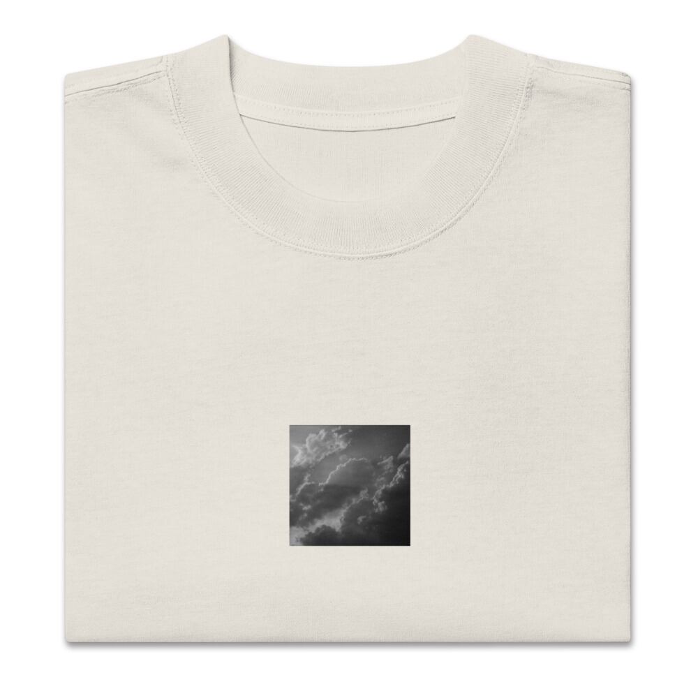Light Rays through Clouds (B&W) - Oversized Faded T-Shirt | 雲から差す光 モノクロ オーバーサイズフェードTシャツ