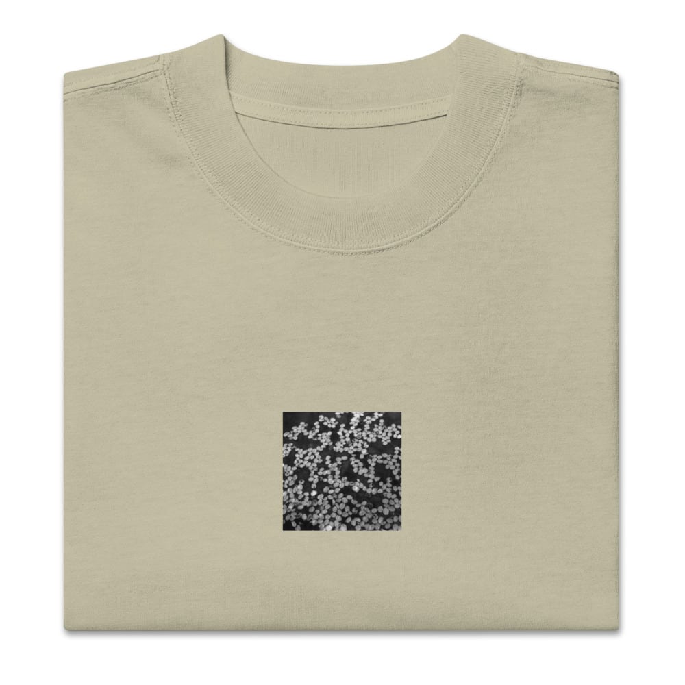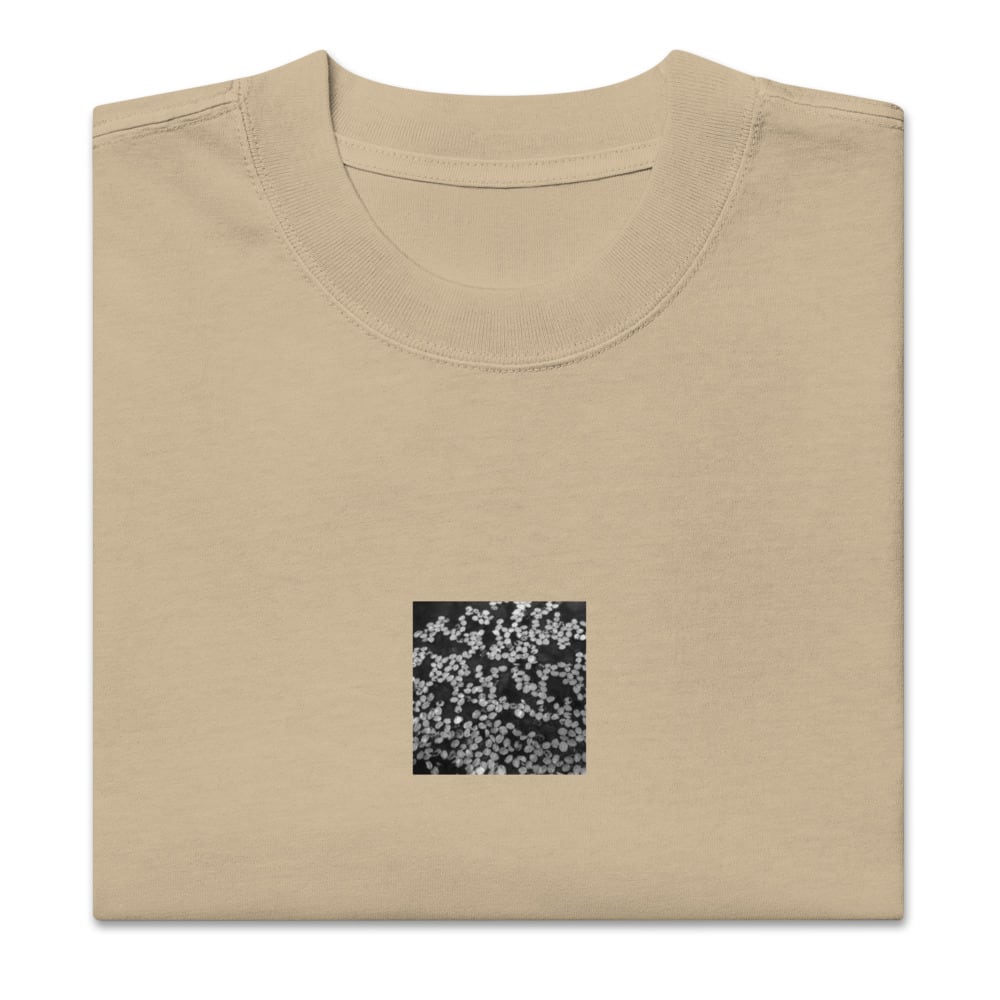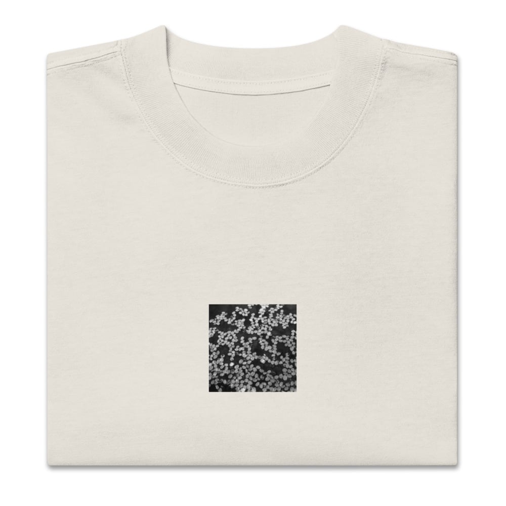 seiartinc, original photography, fine art, wearart, oversized t-shirt, faded, Cherry Blossom Petals in Puddle, 桜, はなびら, 桜吹雪, 水たまり, 水面, 春, cherry blossom, sakura, petals, puddle, spring, nature, natural, zen, minimalist, monochrome, black and white, b&w, モノクロ, 白黒, photo, art, design, boxy fit, street wear, オーバーサイズ, フェード, アパレル, ファッション, 写真家, オリジナルデザイン, AS Colour 5082