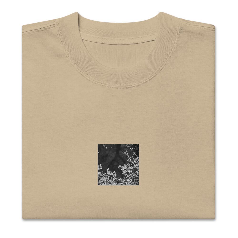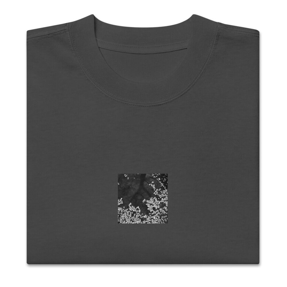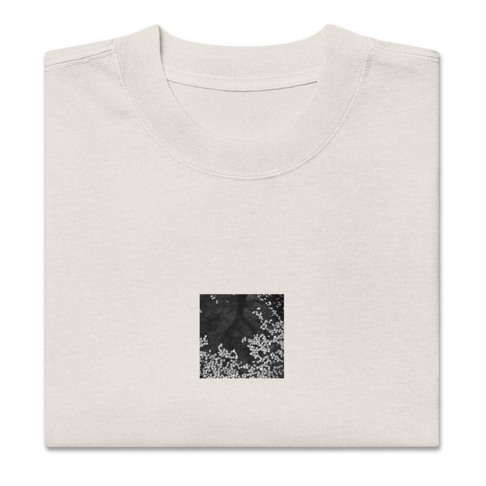seiartinc, original photography, fine art, wearart, oversized t-shirt, faded, Cherry Blossom Petals on Water Surface, 桜, 花びら, 桜吹雪, 水面, 池, 川, 春, cherry blossom, sakura, petals, water surface, spring, nature, natural, zen, minimalist, monochrome, black and white, b&w, モノクロ, 白黒, photo, art, design, boxy fit, street wear, オーバーサイズ, フェード, アパレル, ファッション, 写真家, オリジナルデザイン, AS Colour 5082