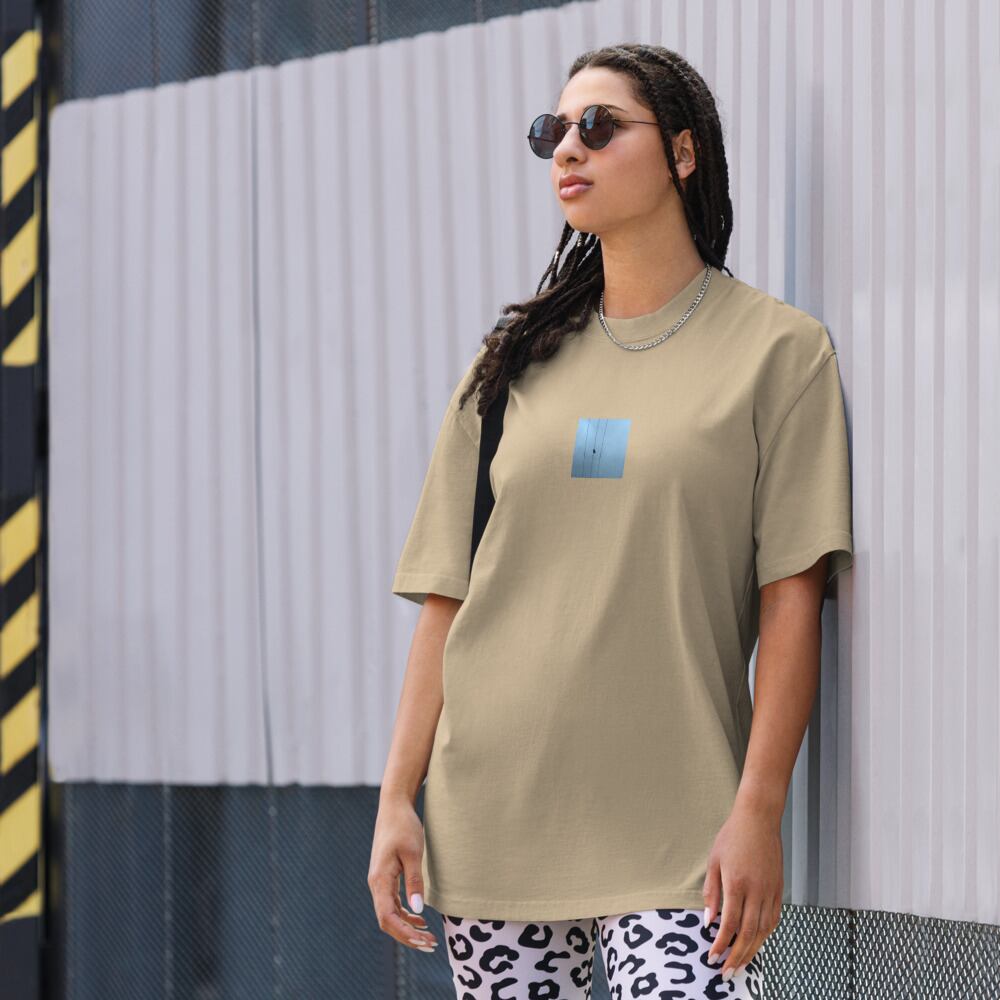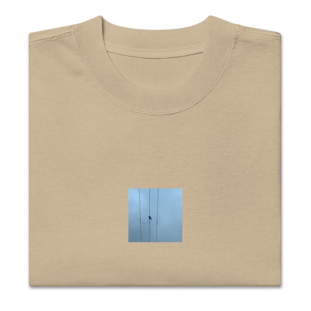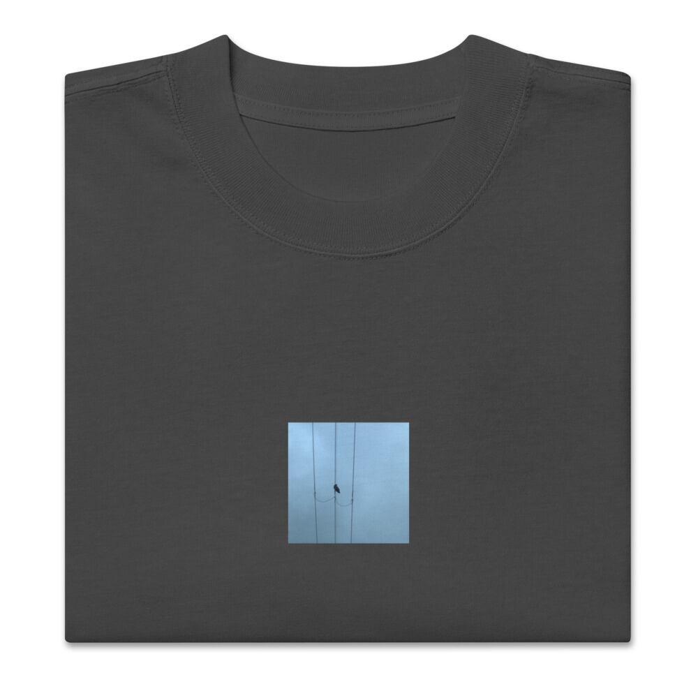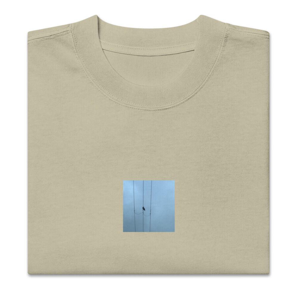 seiartinc, original photography, fine art, wearart, oversized t-shirt, faded, Crow and Power Lines, カラス, 電線, 鳥, 都市, 空, crow, bird, power lines, sky, urban, minimalist, nature in city, contrast, color photo, photo, art, design, boxy fit, street wear, オーバーサイズ, フェード, アパレル, ファッション, 写真家, オリジナルデザイン, AS Colour 5082