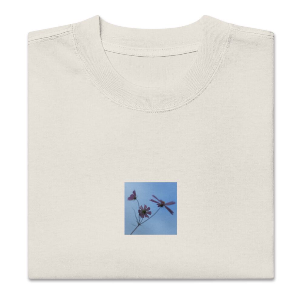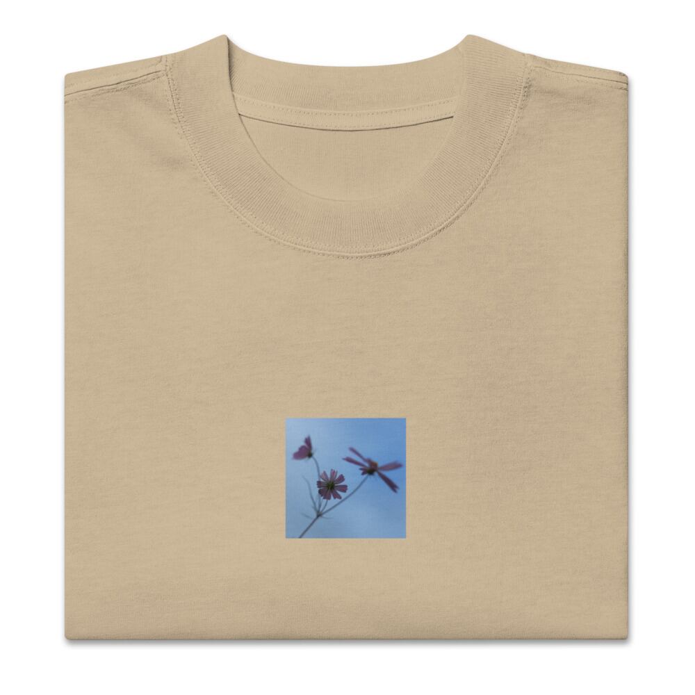 Three Cosmos Flowers - Oversized Faded T-Shirt | 3輪のコスモス オーバーサイズフェードTシャツ