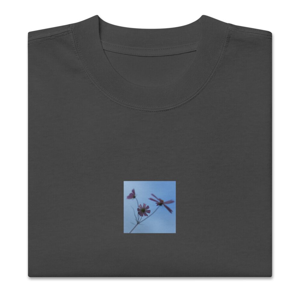 seiartinc, original photography, fine art, wearart, oversized t-shirt, faded, Three Cosmos Flowers, コスモス, 秋桜, 3輪, 花, 植物, 自然, 秋, cosmos, flowers, nature, natural, botanical, autumn, pink, floral, color photo, photo, art, design, boxy fit, street wear, オーバーサイズ, フェード, アパレル, ファッション, 写真家, オリジナルデザイン, AS Colour 5082